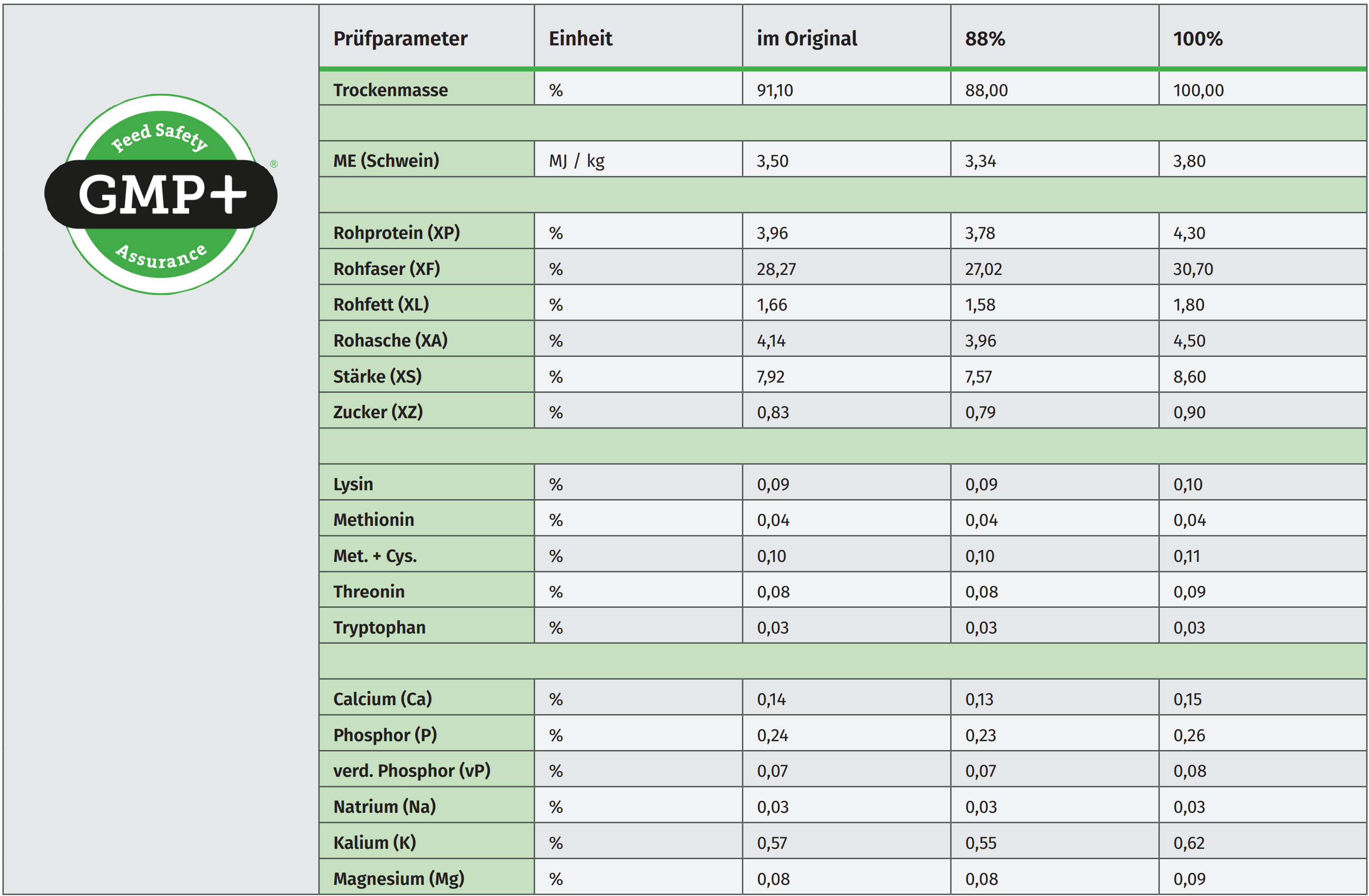 Vor Feuchtigkeit geschützt in der Halle oder im Silo. Einsatzrate nach Rationsberechnung vom Futtermittelberater